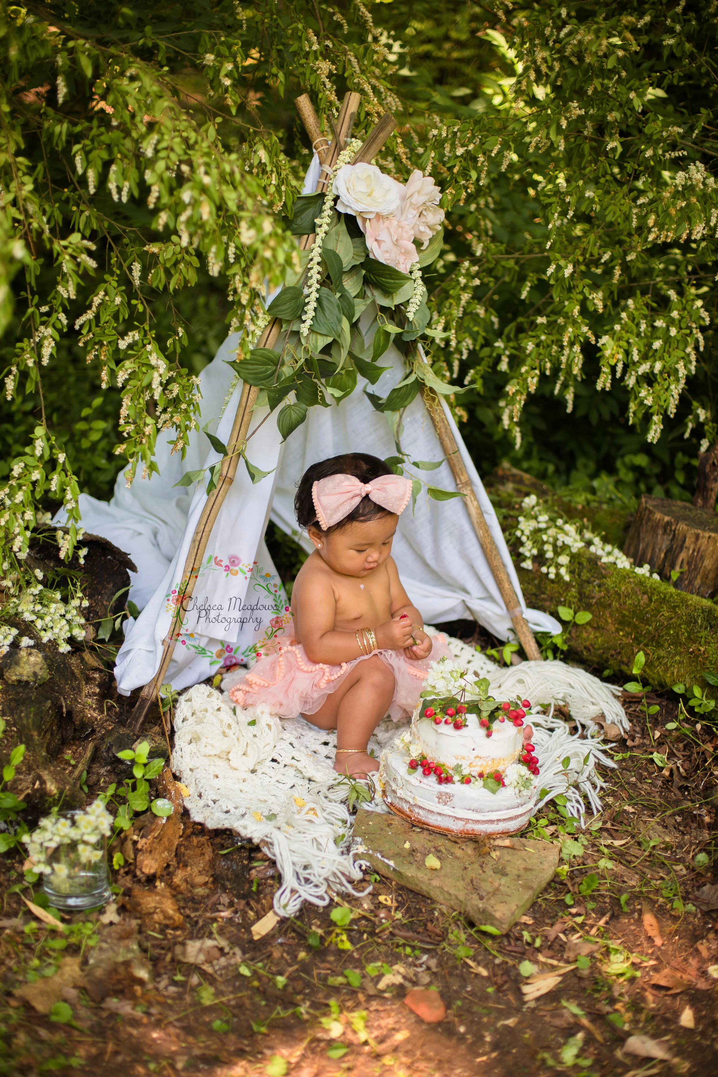After a beautiful drive out to a private lot we were able to shoot in a beautiful field of wild flowers in 70 degree weather! We had to be extra careful tiptoeing around though because we weren't allow to pick or step on the flowers and little Miss I was so well behaved and resisted the temptation! Mama L gave me creative freedom for her Cake Smash which always creates some pressure but I'm pretty pleased with our woodland themed session!