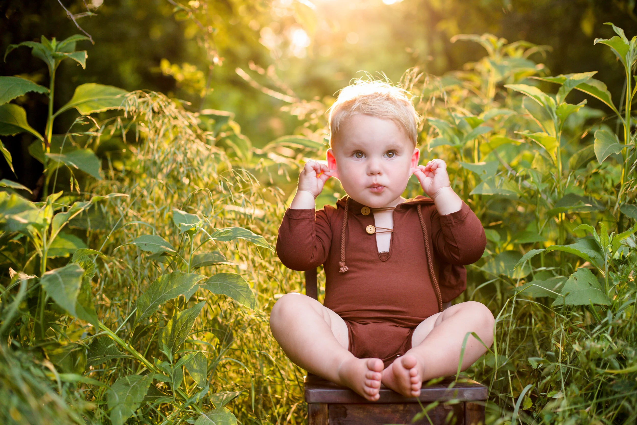 We thankfully avoided all the rain that had been looming all week, this was the first nice day in a while and we had already had to reschedule once or twice, and I couldn’t have picked a nicer family to work with. Baby M got to model one of the new outfits I have available for little boys and he was the perfect baby bear. He also loved the chair I had brought for him and kept sitting in it no matter where I moved it. He even tried to sit in it when I was trying to put it up, it was the cutest thing. My favorite part of the session though was when his parents had him identify all his body parts, which you can see in some of the photos below. He was starting to get tired so to keep his attention we asked him to find his belly, his nose, and his ears, and he got every single one!!! Oh, and his Chris Farley impression was pretty dang spot on