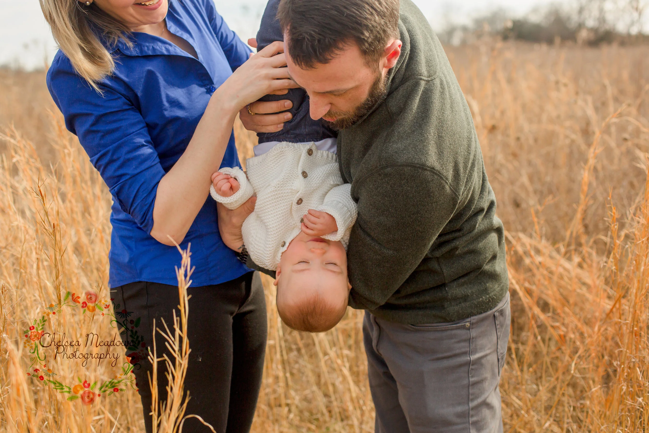 I always try and convince parents to allow me to take their newborn outside because the payoff is always soooo worth it but with Nashville weather we're always chancing it! Especially these last few weeks, we've gone from 30 degrees to 65 degrees the next day. (I fuss about weather a lot) Mama S & I ended up planning their session in about a week and I think Mama S caught on that overtime we talked about weather on the day of our session I just dodged the question. I'm a firm believer that if you talk about it, it brings it to light and I didn't have a plan B! We met at a separate venue and they followed me to their location, in the mean time it starts raining, which means it will get colder and I was starting to panic a bit! Thank God once we actually got there (which was only about a 5 minute difference) it had stopped sprinkling and despite being in a big open field where the wind was blowing, it felt much warmer then we were expecting it to be!