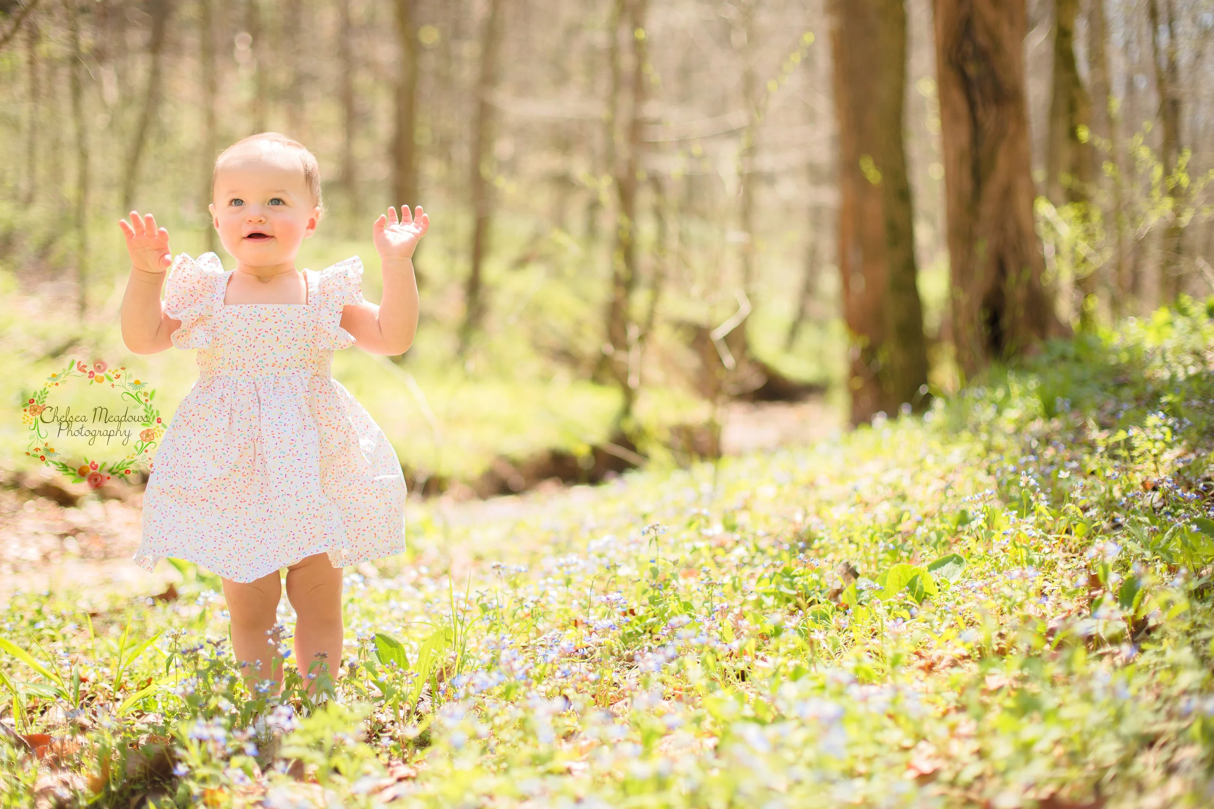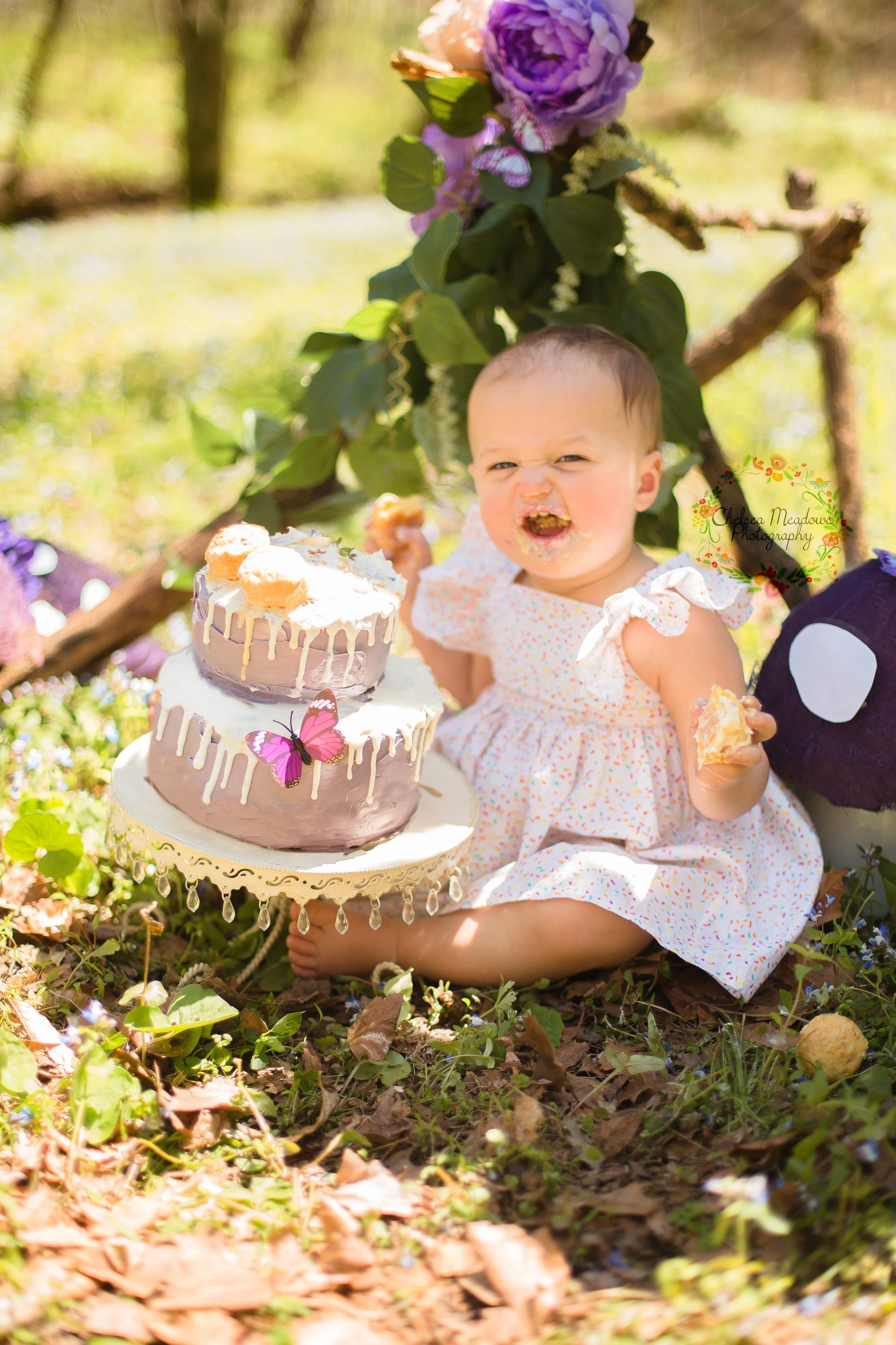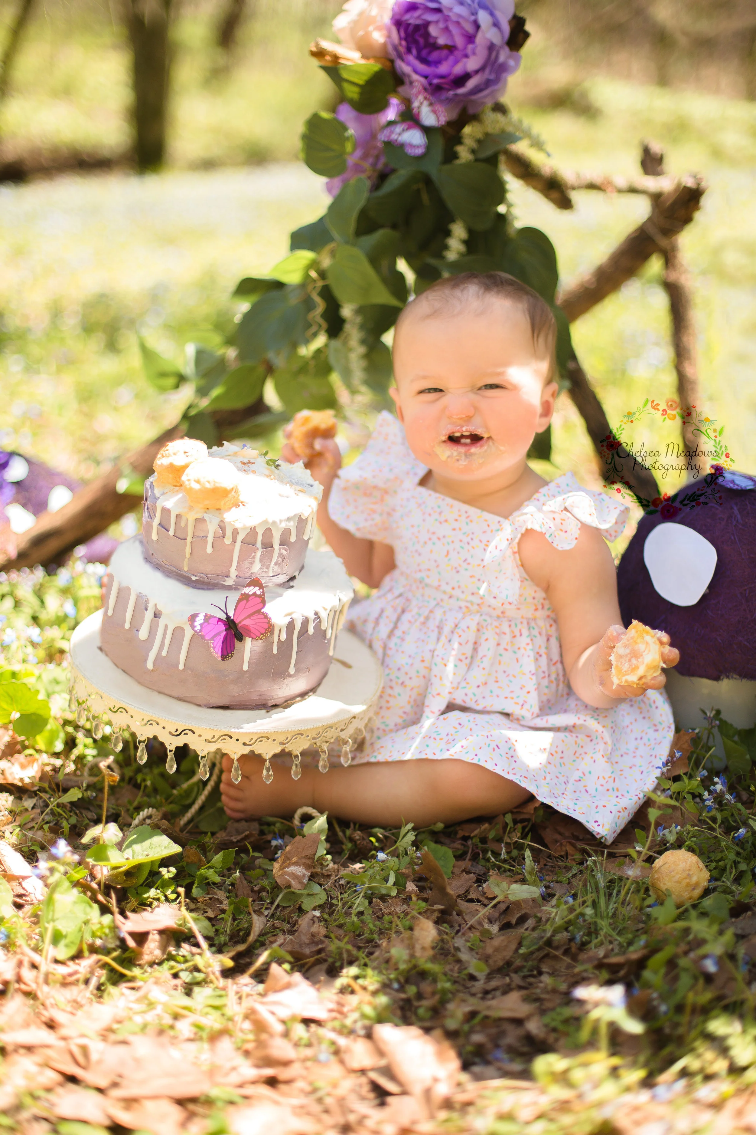 After a beautiful drive out to a private lot we were able to shoot in a beautiful field of wild flowers in 70 degree weather! We had to be extra careful tiptoeing around though because we weren't allow to pick or step on the flowers and little Miss I was so well behaved and resisted the temptation! Mama L gave me creative freedom for her Cake Smash which always creates some pressure but I'm pretty pleased with our woodland themed session!